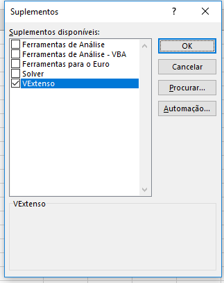 Usuário. Selecionado aparecerá automaticamente a função VExtenso, clique em OK.